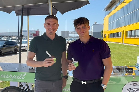 Unsere Mitarbeiter:innen in der Hauptniederlassung hatten die Möglichkeit, sich mit einer köstlichen Auswahl an Eissorten bei einem mobilen Eiswagen zu erfrischen. Von cremigem Cookies-Eis über fruchtiges Mango-Eis bis hin zu schokoladigem Genuss war für jeden Geschmack etwas dabei.