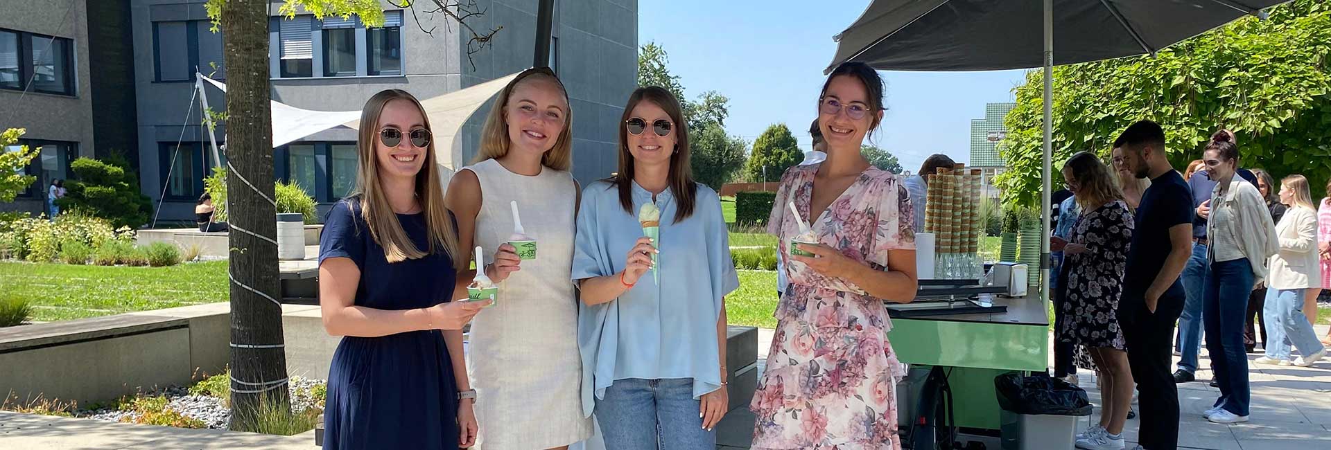 Im August konnten unsere Mitarbeiter:innen ihre Pause bei strahlendem Sonnenschein gemeinsam mit Kolleg:innen und einem erfrischenden Eis genießen.