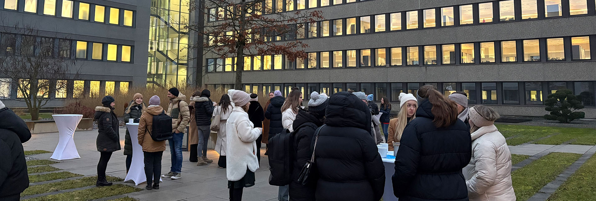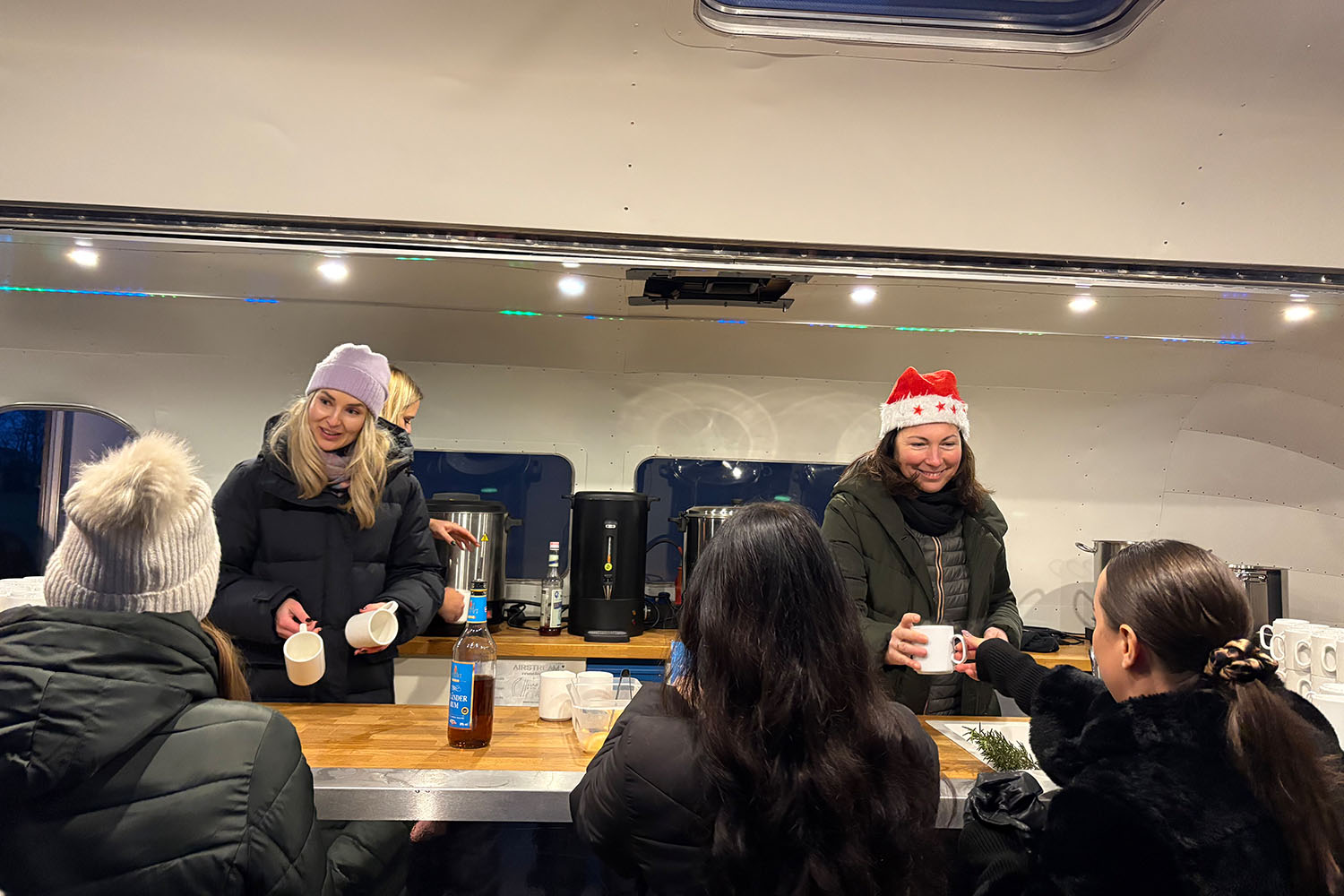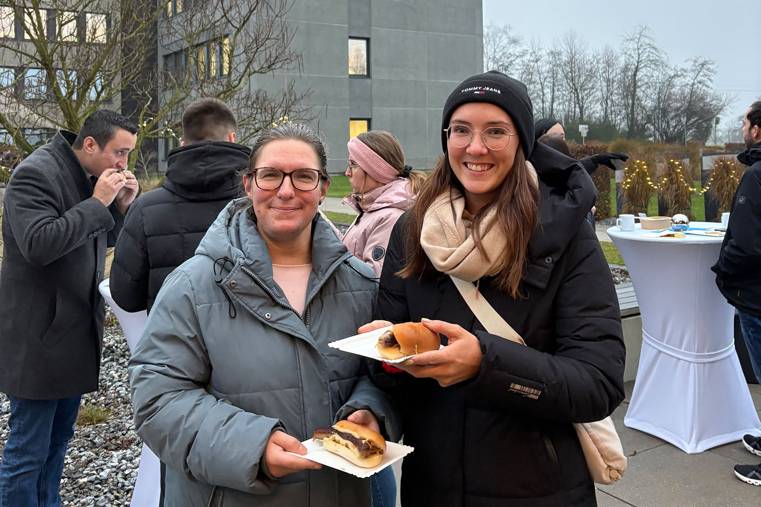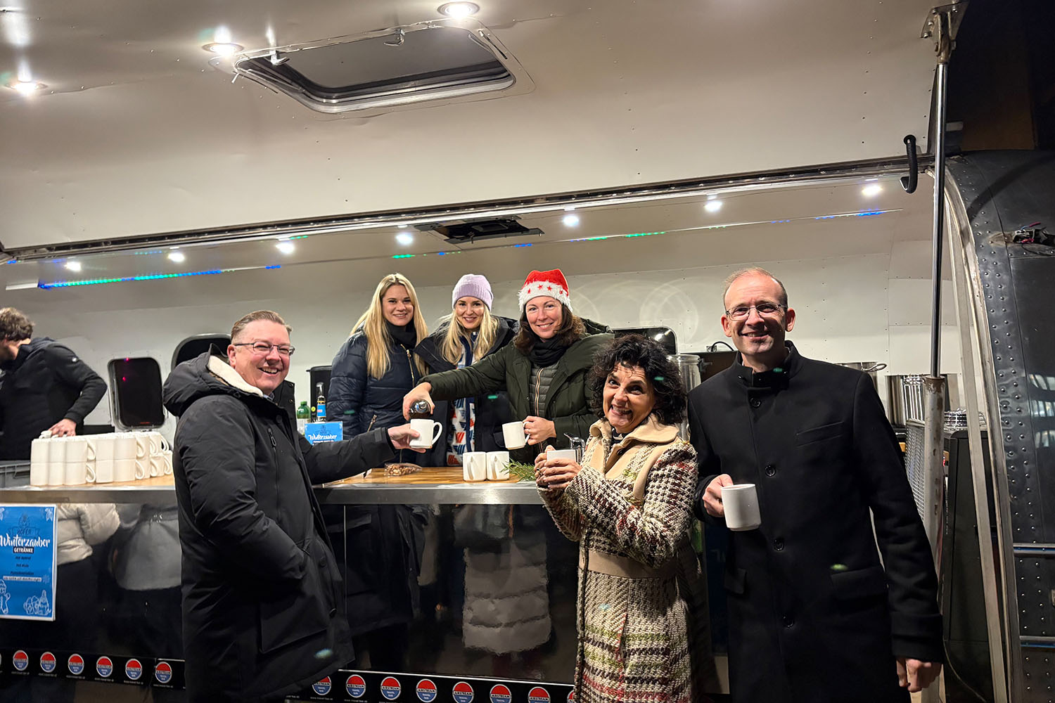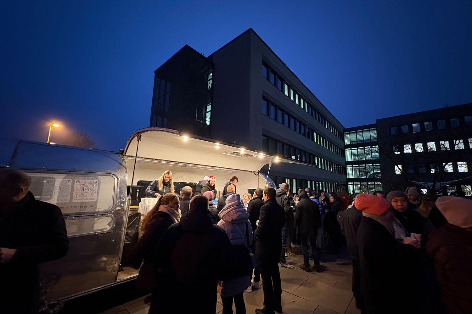 Wenn draußen die Temperaturen sinken, steigt bei uns die Vorfreude auf den HOFER Winterzauber. Rechtzeitig nach dem ersten Advent wurde die Begegnungszone in der Hauptniederlassung in einen winterlichen After-Work Treffpunkt verwandelt. An zwei Tagen hatten unsere Mitarbeiter:innen die Möglichkeit sich die Hände an Hot Mule, Hot Aperol und Johannisbeerpunsch zu wärmen und sich mit Kolleg:innen aus anderen Abteilungen auszutauschen. Zusätzlich haben einige Führungskräfte sowie unsere Geschäftsleitung ihre Kompetenzen abseits vom Büroalltag beim Punsch ausschenken unter Beweis gestellt. Und weil es nach einem Arbeitstag wichtig ist sich gut zu stärken, wurden von Hütthaler verschiedene Gerichte gezaubert, bei denen von Kasnocken mit Röstzwiebeln bis zu gebrannten Mandeln für jede:n etwas dabei war.