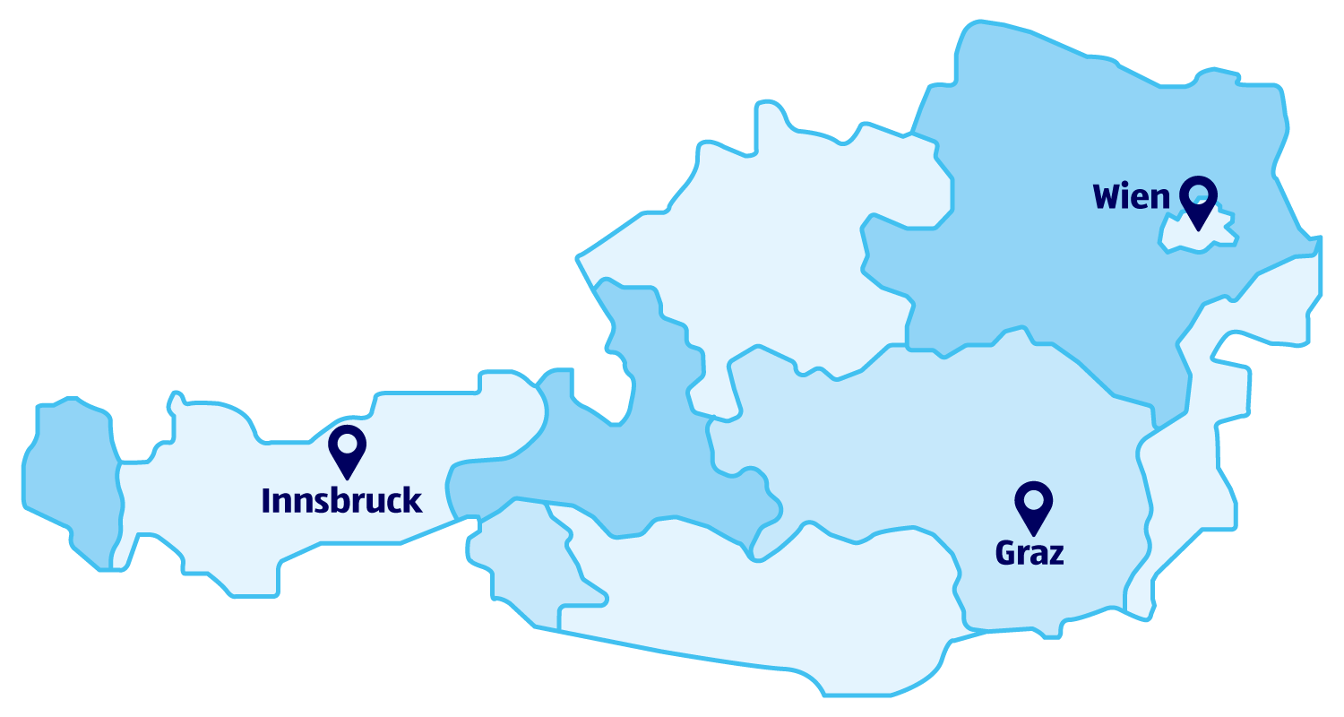 Andreas-Hofer-Straße 55, 6020 Innsbruck | Eckertstraße 54, 8020 Graz | Engerthstraße 154B, 1020 Wien